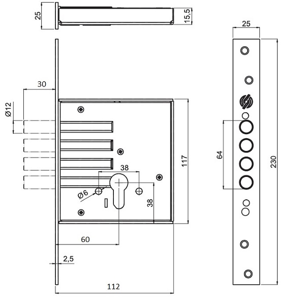 Описание Механизм замка SECUREMME 2070 (BS60мм)