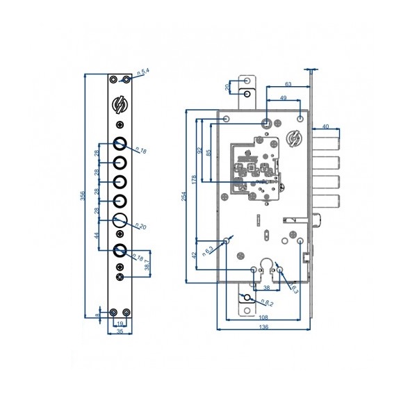 Двухсистемный итальянский замок SECUREMME 2433 это надежный врезной замок с двумя механизмами секретности: верхний - сувальдный, нижний - цилиндровый. Они работают взаимосвязано. Сначала закрываете замок сувальдными ключом (4 полуоборота). Затем закрываете нижний цилиндровый механизм (2 полуоборота). Популярность ему придает универсальность - благодаря перевороту защелки подходит в лево и правосторонние двери. Данная модель замка является аналогом замка MOTTURA 54.797.