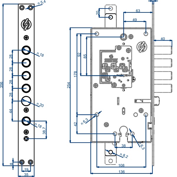 Двухсистемный врезной замок SECUREMME 2533 мастера рекомендуют устанавливать в металлические дверные полотна квартир или домов, где требуется надежная защита помещения. Замок выполняет роль основного и по сути заменяет 2 замка, ведь управляется двумя системами, которые работают независимо друг от друга: верхний - запатентованной сувальдной Securmap, нижний - сердцевиной стандарта EURO DIN. При необходимости сувальдный механизм легко заменяется на еще один цилиндровый с помощью специального нуклео. Эта модель замка предназначена для правосторонних дверей и пользуется популярностью из-за своей надежности.