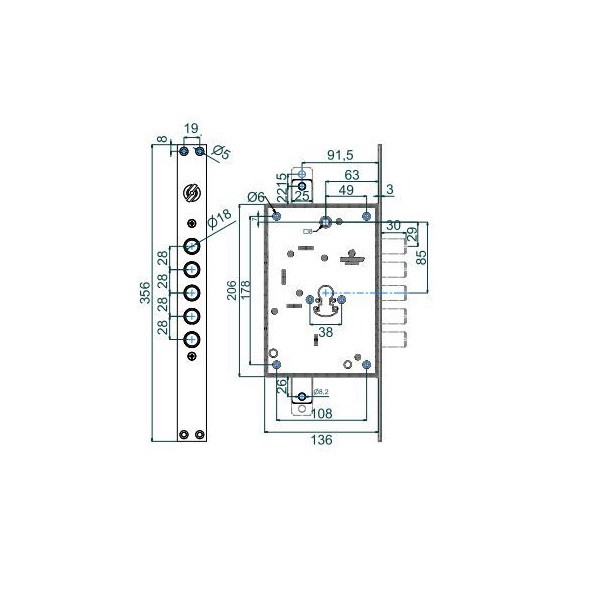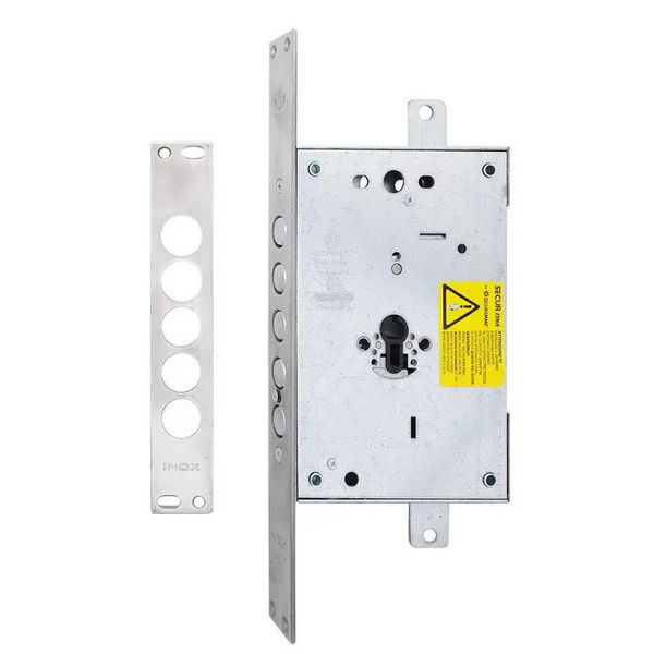 Итальянский врезной замок SECUREMME 2663 TT2 используют для установки в дверных полотнах с металла как дополнительный верхний. Управляется он цилиндровым механизмом, который не входит в комплект и подбирается отдельно. Как и другие замки SECUREMME с редукторной системой работы основного механизма, модель 2663 TT2 плавная и бесшумная в работе. За счет этого довольно популярна. От модели SECUREMME 2663 GXX отличается наличием функции блокировки ригелей при выбивании цилиндра: если выбьют цилиндр и вставят новый, то замок открыть будет невозможно.