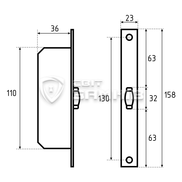 • Корпус защелки взаимозаменяем с другими защелками серии: CLASS 155.