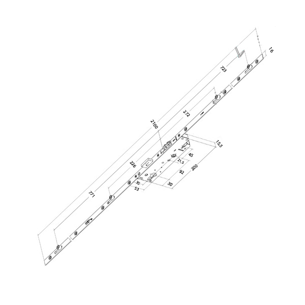 Механизм замка AXOR бочка 35*92 мм рейка 2100 мм