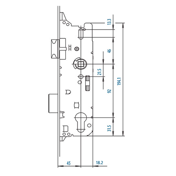 Механизм замка FUHR защелка 45*92 мм рейка 1800-2000 мм от ключа