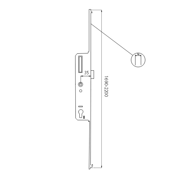 Описание Механизм замка VORNE бочка 35*92 мм рейка 1690-2200 мм с ригелем
