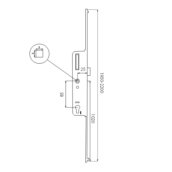 Описание Механизм замка VORNE защелка 25*85 мм рейка 1950-2200 мм без ригеля