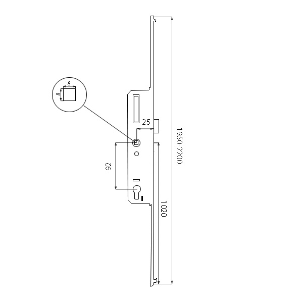 Описание Механизм замка VORNE защелка 25*92 мм рейка 1950-2200 мм без ригеля