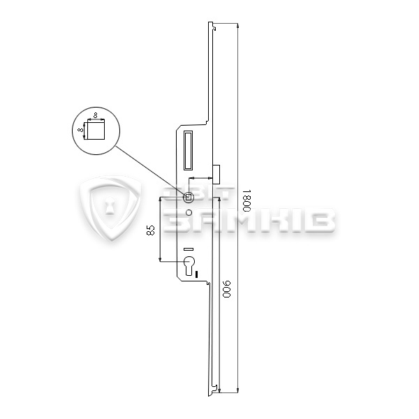Механизм замка VORNE защелка 25*85 мм рейка 1800 мм с ригелем