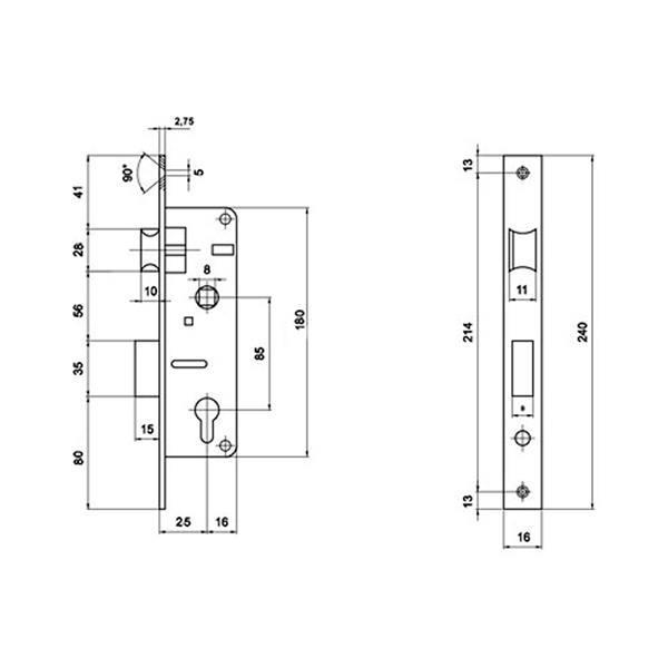 Механизм замка KALE 252 R (BS60*85мм) хром