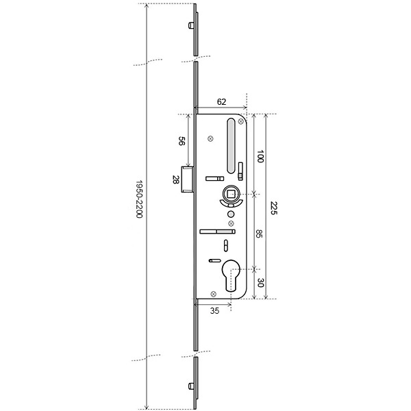 Описание Механизм замка VORNE защелка 35*85 мм рейка 1950-2200 мм без ригеля