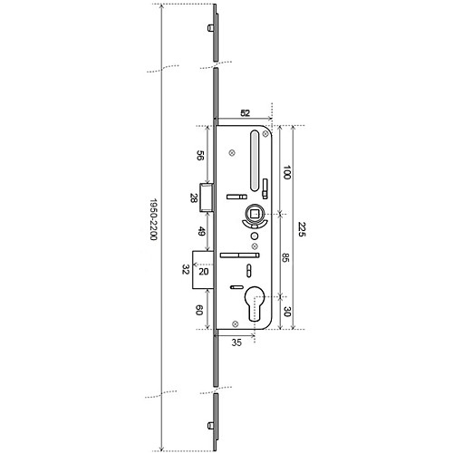 Описание Механизм замка VORNE защелка 35*85 мм рейка 1950-2200 мм с ригелем