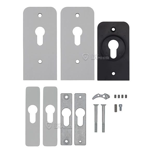 Фиксирование производится одним прямоугольным ригелем. Он с обеих сторон управляется сердцевиной стандарта EURODIN размером 60 мм (30х30). Она в комплект не входит и докупается отдельно.