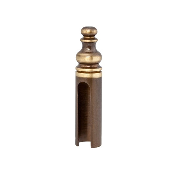 Колпачок DND 2313/2-14 - это аксессуар, который устанавливается на штыревые петли диаметром 14 мм. Служит для их маскировки и придания завершенного вида двери. Имеет интересный оригинальный дизайн с фигурной верхушкой, поэтому лучше будет дополнять дверные полотна и помещения в классическом стиле. Изготовлен из латуни. В цвете "бронза" будет отлично смотреться на дверях темных оттенков.
