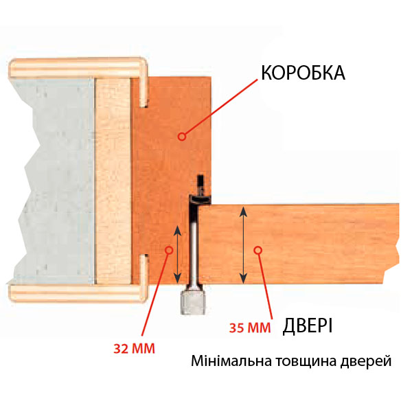 • Размер крыла петли позволяет использовать его на дверях с минимальной толщиной 35 мм.