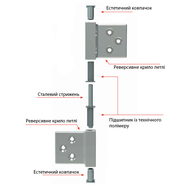 • Петля реверсивная – для дверей как правого, так и левого открывания.