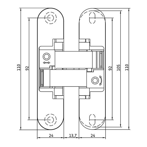 ANSELMI AN 150 3D – это дверная петля скрытого монтажа. На практике это практически означает, что она спрятана внутрь дверного полотна и не выступает за его плоскость. С точки зрения безопасности такое исполнение наилучшее, ведь такую петлю нельзя выбить или спилить.