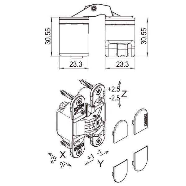Петля OTLAV Invisacta IN230 + колпачки черный матовый